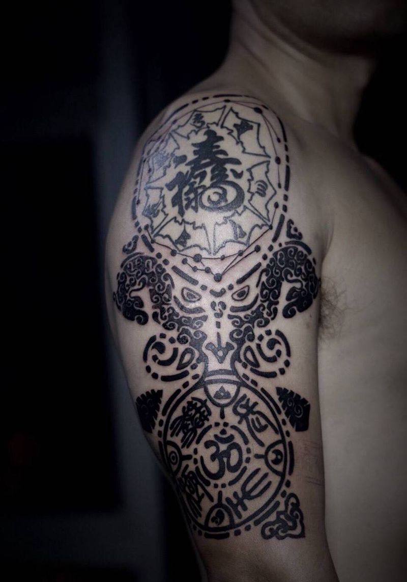 当前位置: 首页 >山东省青岛市纹身店-青岛地狱男爵刺青纹身图案>大臂图腾纹身图片_成品手臂欧美图腾黄岛青岛刺青青岛纹身图案
