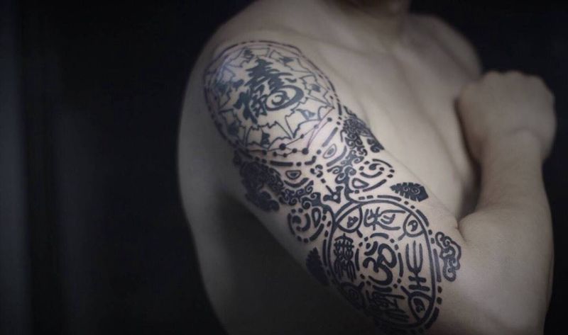 当前位置: 首页 >山东省青岛市纹身店-青岛地狱男爵刺青纹身图案>大臂图腾纹身图片_成品手臂欧美图腾黄岛青岛刺青青岛纹身图案