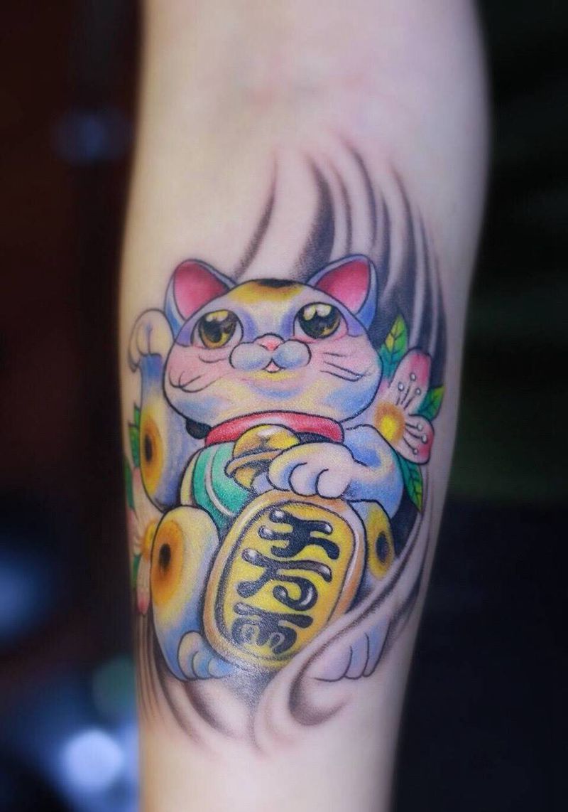 当前位置: 首页 >山东省青岛市纹身店-青岛地狱男爵刺青纹身图案>小臂招财猫纹身图片_成品腿部欧美写实动物黄岛青岛刺青青岛招财猫纹身图案