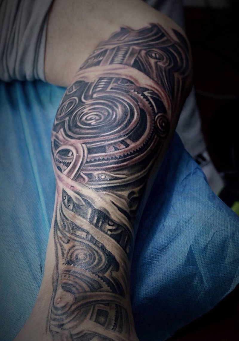 机械腿纹身图片_成品腿部欧美图腾黄岛青岛刺青青岛机械腿纹身图案