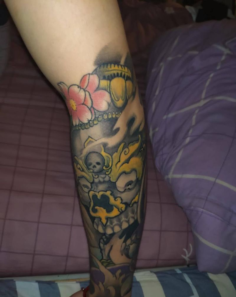 • T网红王老大花腿龙纹身图片_腿部新传统纹身图案