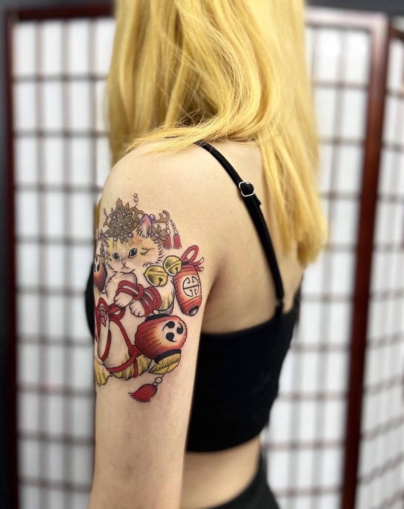 • T招财猫纹身图片