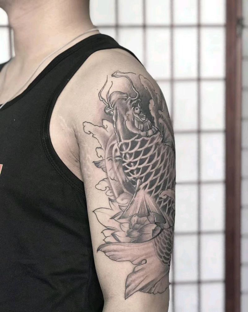 当前位置: 首页 >山东省青岛市纹身店-八玖刺青纹身图案>大臂鲤鱼纹身图片_手臂纹身图案