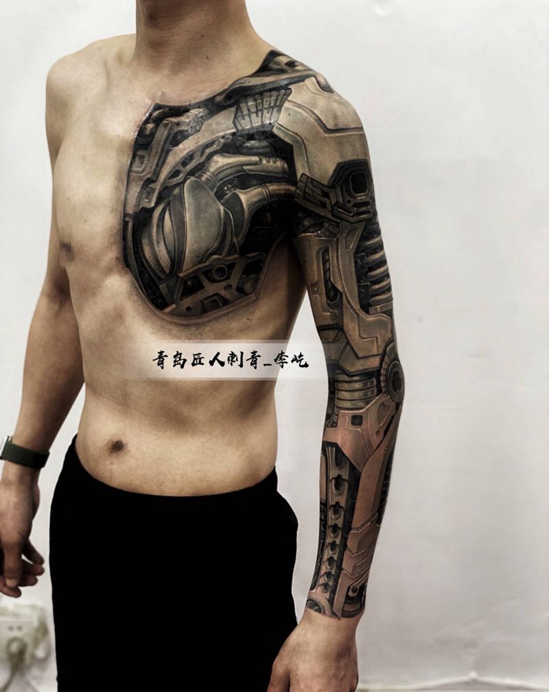 当前位置: 首页 >山东省青岛市纹身店-匠人刺青纹身图案>机械心脏 机械臂纹身图片_手臂欧美写实新传统机械纹身图案