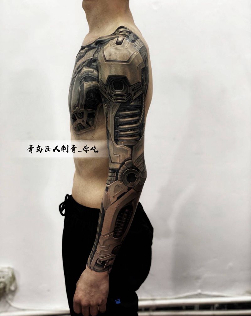 当前位置: 首页 >山东省青岛市纹身店-匠人刺青纹身图案>机械心脏 机械臂纹身图片_手臂欧美写实新传统机械纹身图案