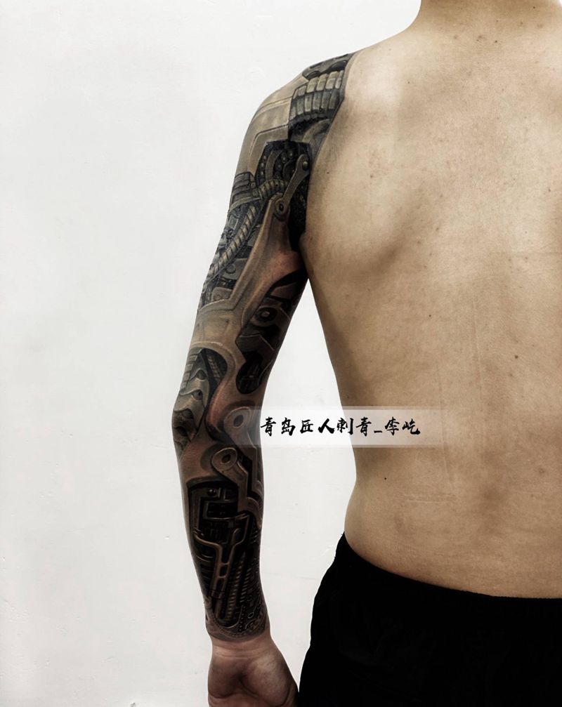 当前位置: 首页 >山东省青岛市纹身店-匠人刺青纹身图案>机械心脏 机械臂纹身图片_手臂欧美写实新传统机械纹身图案