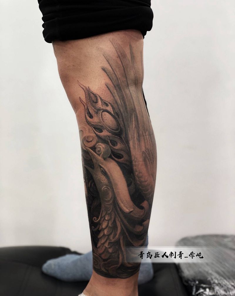 当前位置: 首页 >山东省青岛市纹身店-匠人刺青纹身图案>石雕 凤凰纹身图片_腿部欧美写实新传统石雕凤凰纹身图案