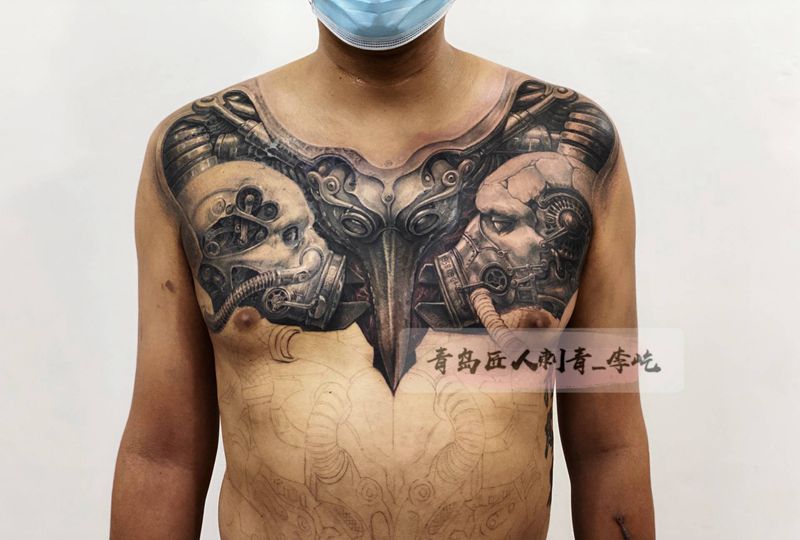 当前位置: 首页 >山东省青岛市纹身店-匠人刺青纹身图案>机械之躯 未完成纹身图片_胸部新传统欧美写实机械生化纹身图案