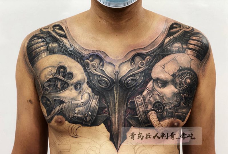 当前位置: 首页 >山东省青岛市纹身店-匠人刺青纹身图案>机械之躯 未完成纹身图片_胸部新传统欧美写实机械生化纹身图案