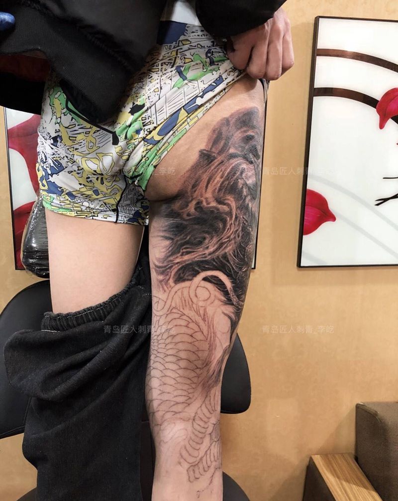 • T网红王老大花腿龙纹身图片_腿部新传统纹身图案