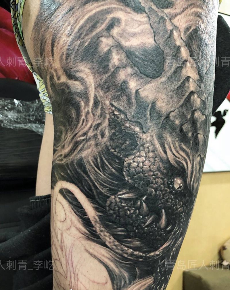 当前位置: 首页 >山东省青岛市纹身店-匠人刺青纹身图案>龙游华夏未完成纹身图片_成品腿部传统写实动物原创纹身图案