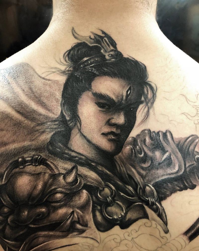 二郎真君纹身图片_背部传统写实人物原创纹身图案