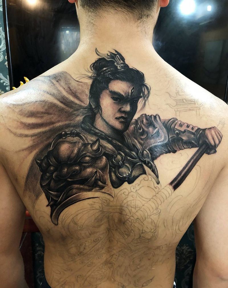 二郎真君纹身图片_背部传统写实人物原创纹身图案