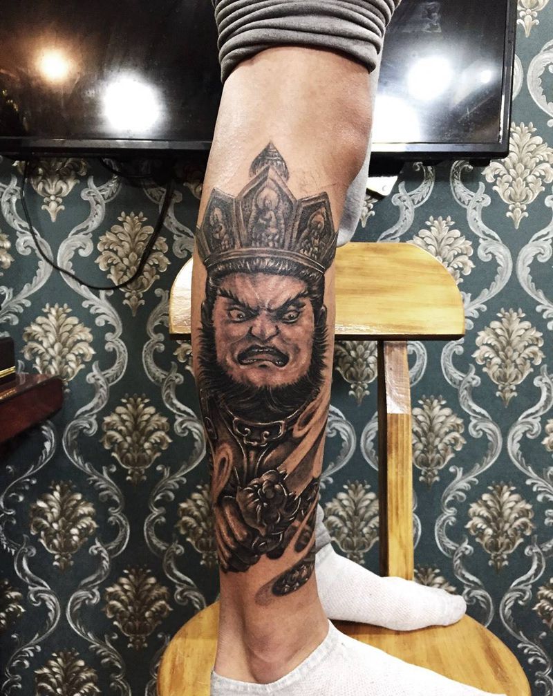 当前位置: 首页 >山东省青岛市纹身店-匠人刺青纹身图案>四大天王纹身图片_腿部成品传统写实人物鬼神原创纹身图案