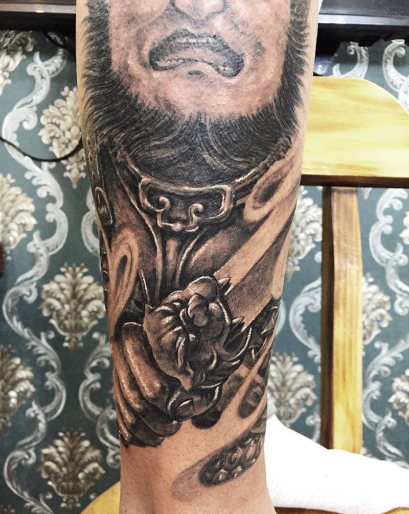 当前位置: 首页 >山东省青岛市纹身店-匠人刺青纹身图案>四大天王纹身图片_腿部成品传统写实人物鬼神原创纹身图案