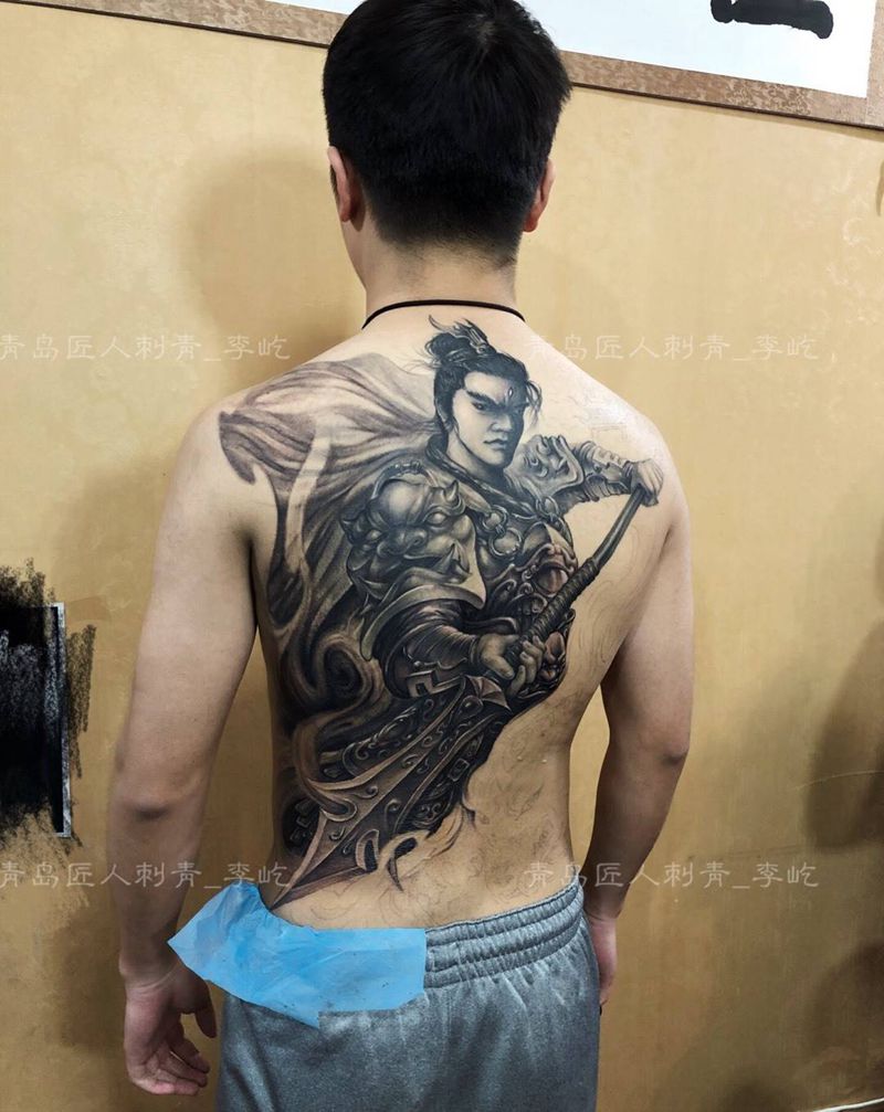 • 黑灰满背纹身图案