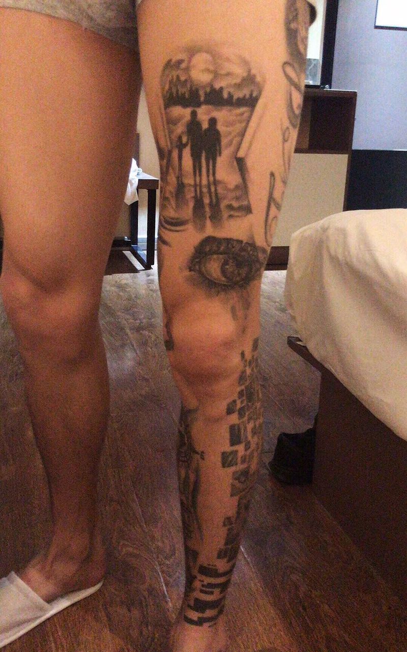 机械腿 遮盖纹身图片_成品腿部欧美写实原创纹身图案