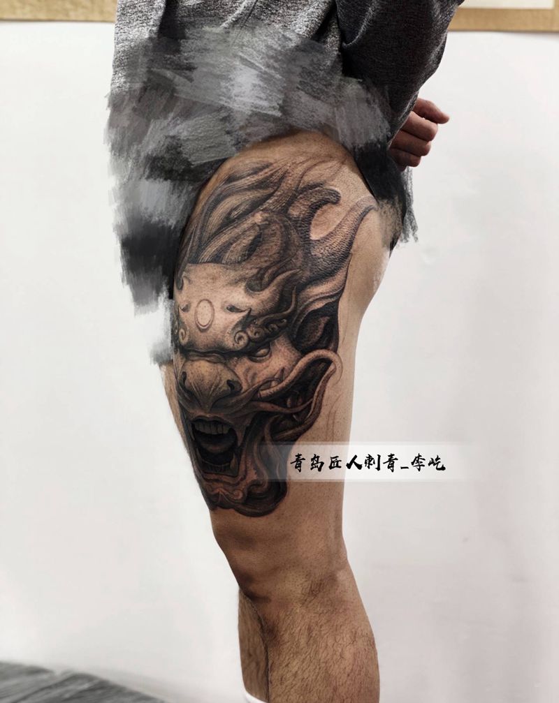 当前位置: 首页 >山东省青岛市纹身店-匠人刺青纹身图案>大腿龙头 未完成纹身图片_腿部新传统欧美写实花腿龙纹身图案