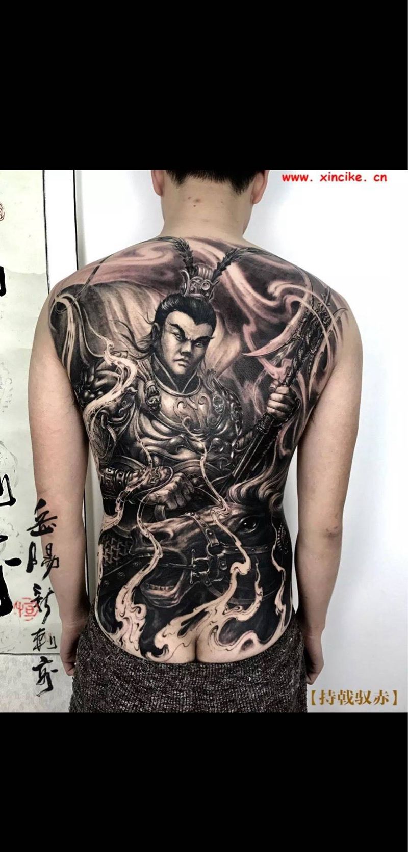 临摹 吕布 满背纹身图片_成品背部传统写实人物纹身图案