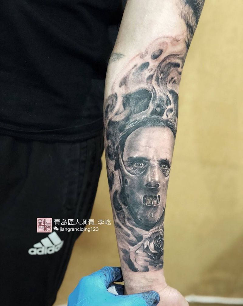汉尼拔肖像纹身纹身图片_成品手臂欧美写实人物原创纹身图案