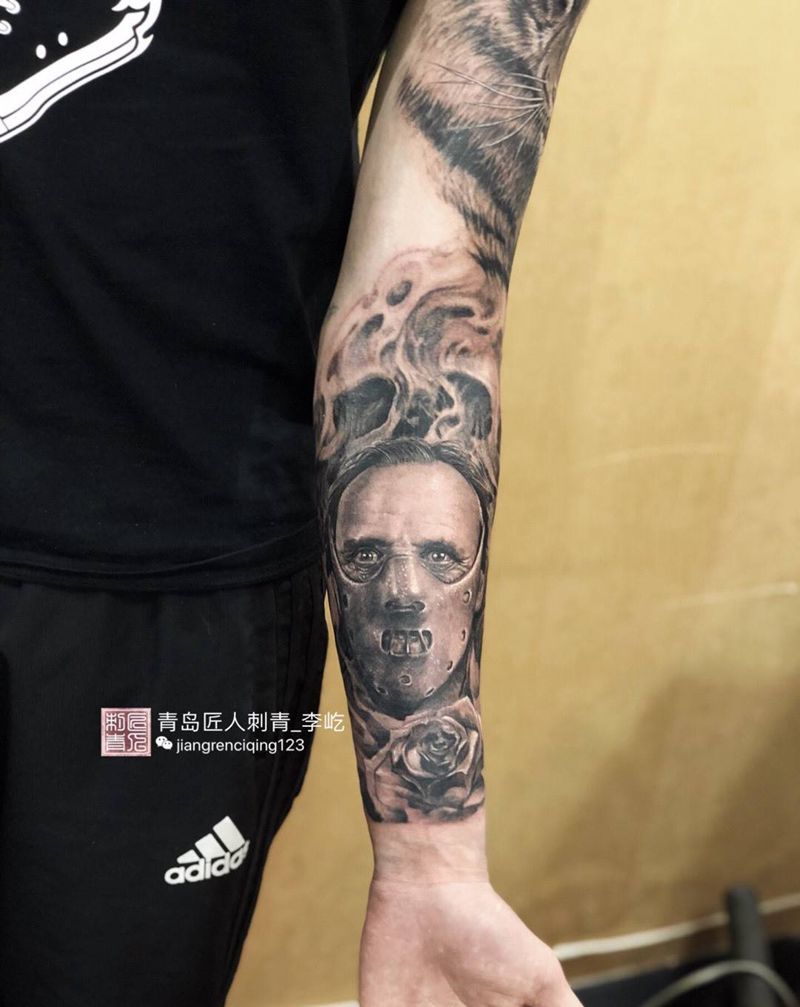 汉尼拔肖像纹身纹身图片_成品手臂欧美写实人物原创纹身图案