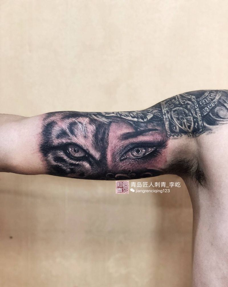 当前位置: 首页 >山东省青岛市纹身店-匠人刺青纹身图案>眼睛纹身图片_成品手臂欧美写实人物动物原创纹身图案