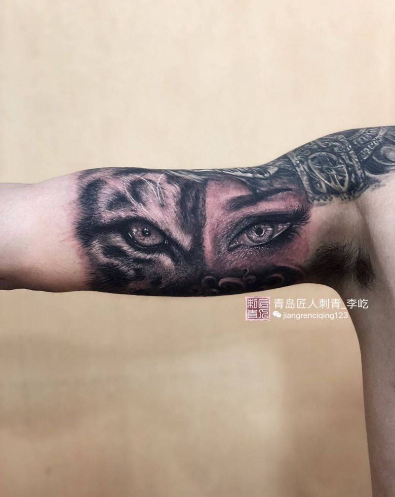 当前位置: 首页 >山东省青岛市纹身店-匠人刺青纹身图案>眼睛纹身图片_成品手臂欧美写实人物动物原创纹身图案
