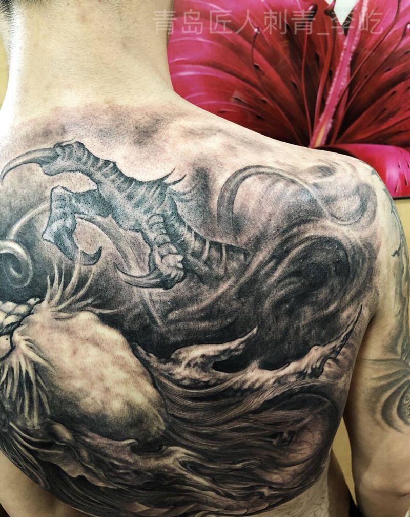 龙门纹身图片_成品背部传统习俗写实鬼神动物原创纹身图案