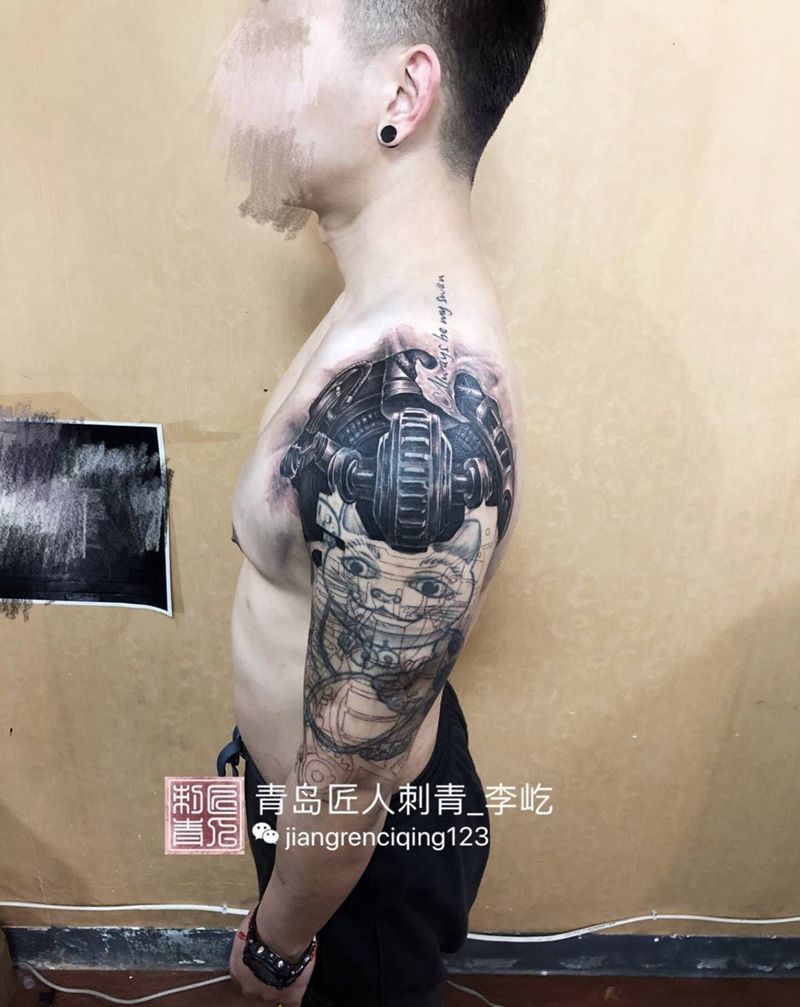 遮盖未完成机械臂纹身图片_成品手臂欧美写实原创纹身图案