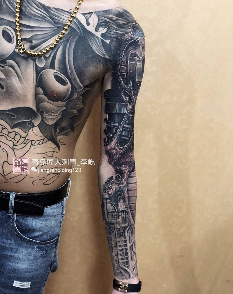 当前位置: 首页 >山东省青岛市纹身店-匠人刺青纹身图案>机械臂遮盖纹身图片_成品手臂写实纹身图案