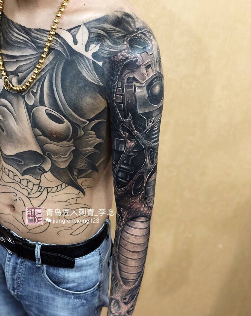 当前位置: 首页 >山东省青岛市纹身店-匠人刺青纹身图案>机械臂遮盖纹身图片_成品手臂写实纹身图案