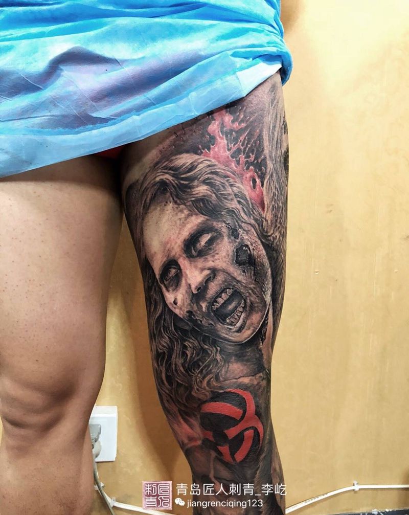 当前位置: 首页 >山东省青岛市纹身店-匠人刺青纹身图案>欧美花腿纹身图片_成品腿部欧美写实人物原创纹身图案