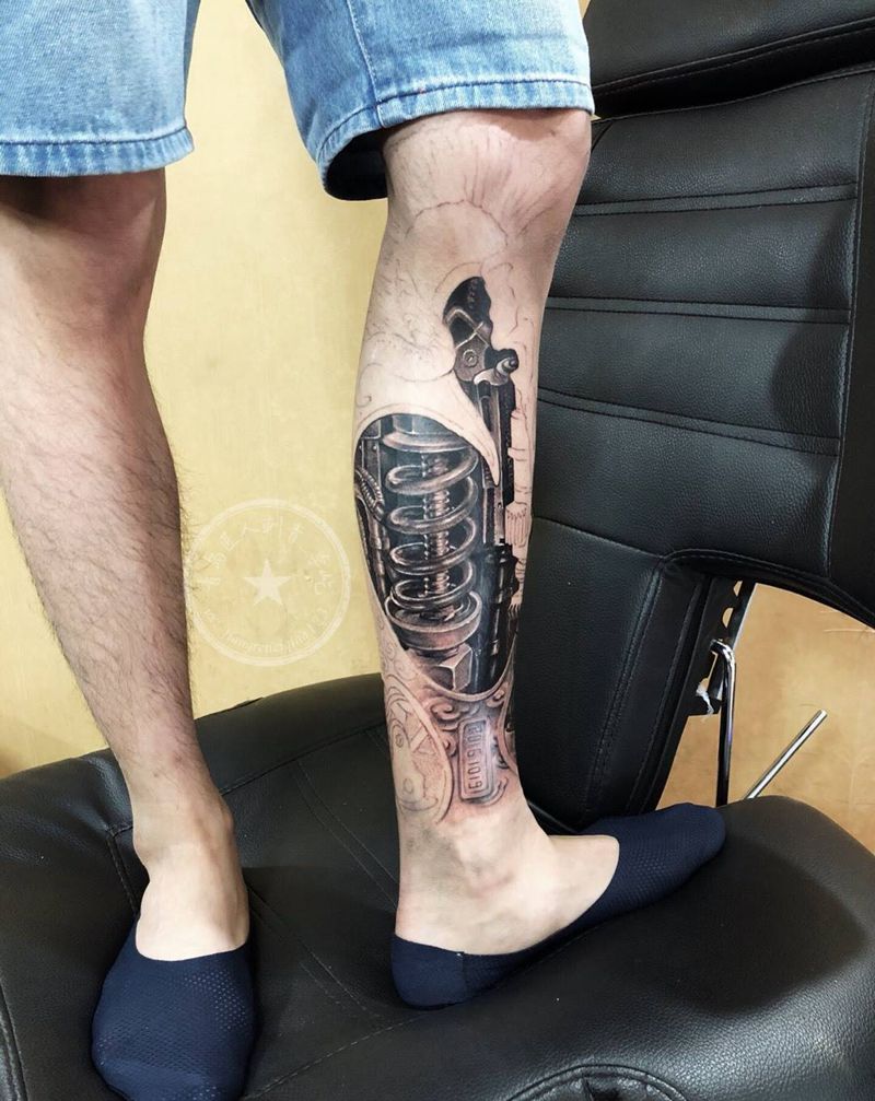 当前位置: 首页 >山东省青岛市纹身店-匠人刺青纹身图案>机械腿 遮盖纹身图片_成品腿部欧美写实原创纹身图案