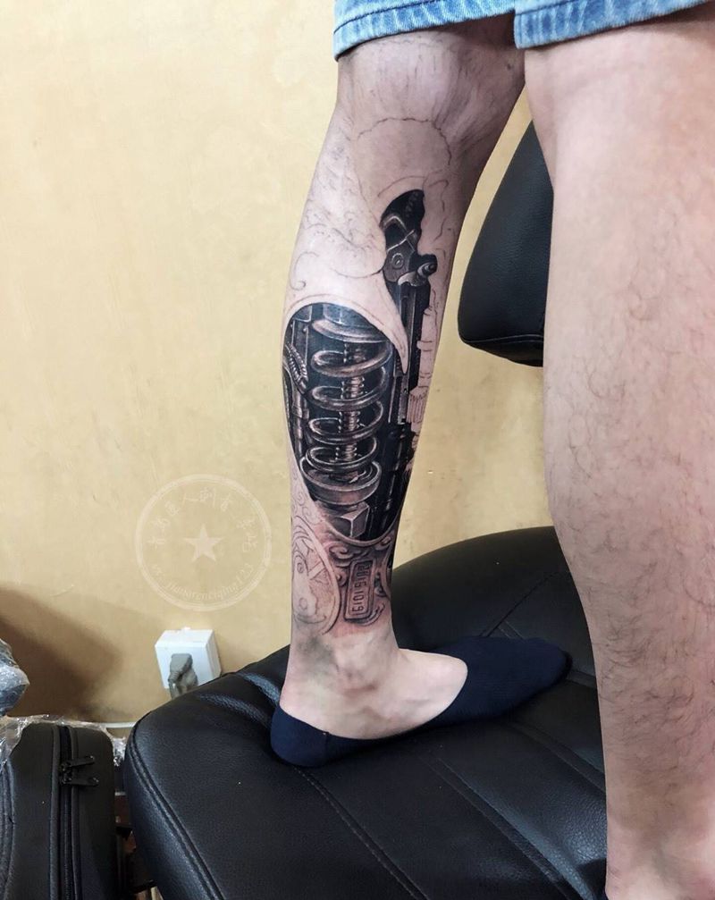 机械腿 遮盖纹身图片_成品腿部欧美写实原创纹身图案