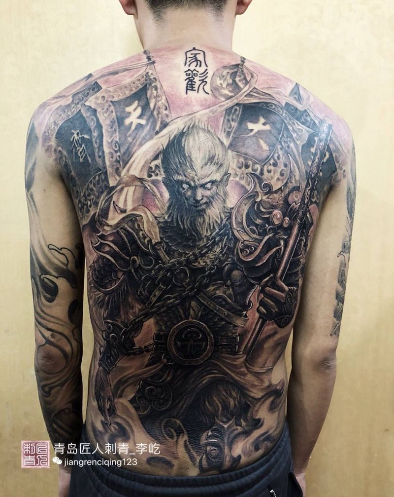 齐天大圣2满背孙悟空 猴子纹身图片_成品背部传统写实人物鬼神原创纹身图案