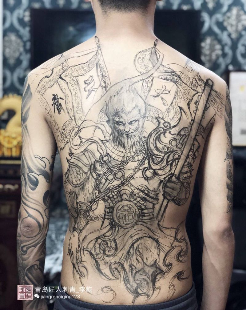 齐天大圣2满背孙悟空 猴子纹身图片_成品背部传统写实人物鬼神原创纹身图案