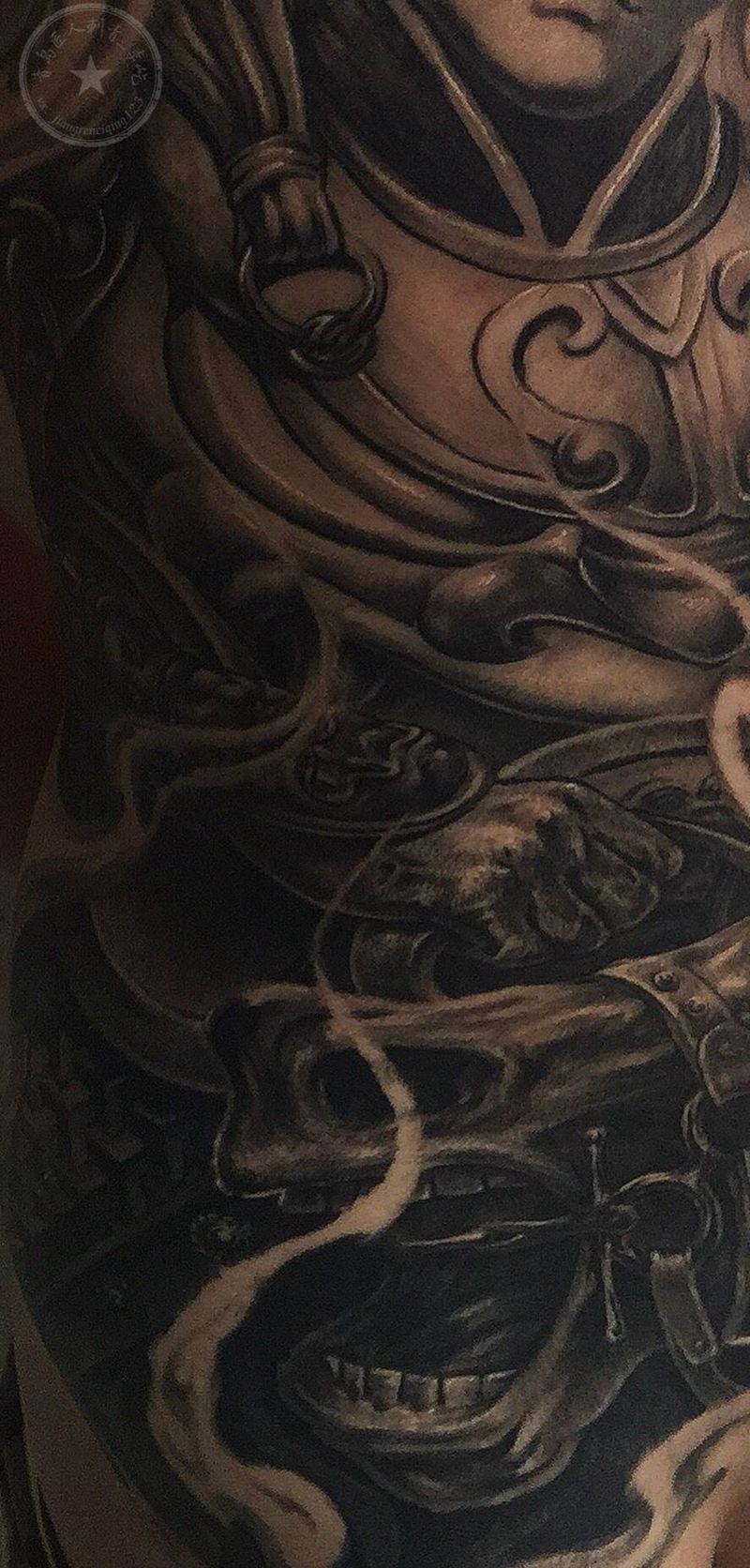 临摹 吕布 持戟驭赤 满背 恢复后纹身图片_成品背部传统写实人物纹身图案