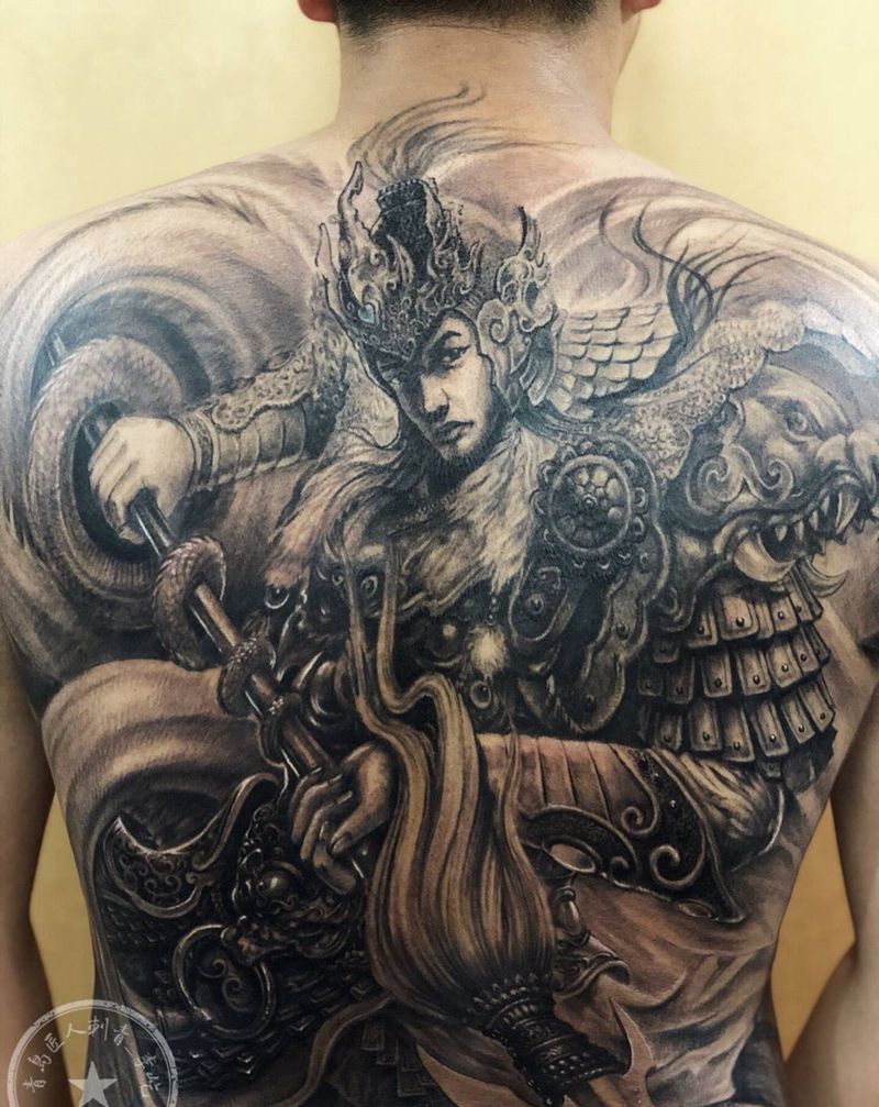 赵云 龙临 满背纹身图片_成品背部传统写实人物纹身图案