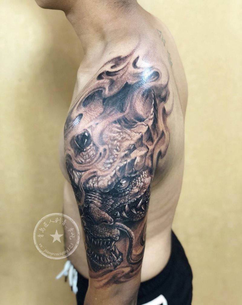 当前位置: 首页 >山东省青岛市纹身店-匠人刺青纹身图案>大臂龙头 龙纹身纹身图片