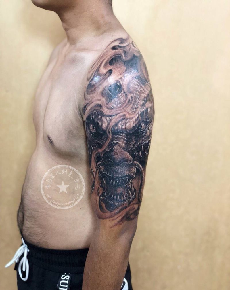 当前位置: 首页 >山东省青岛市纹身店-匠人刺青纹身图案>大臂龙头 龙纹身纹身图片