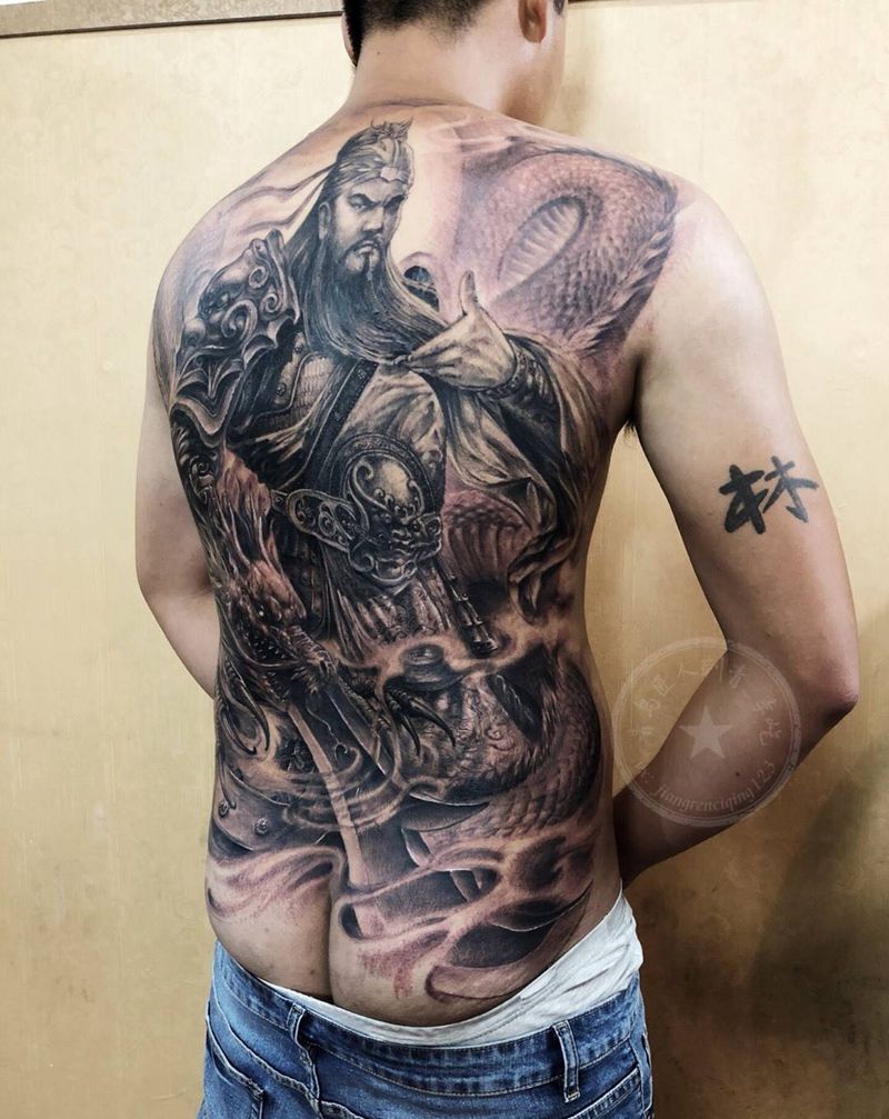 关公 关羽满背纹身图片_成品背部传统写实人物原创纹身图案