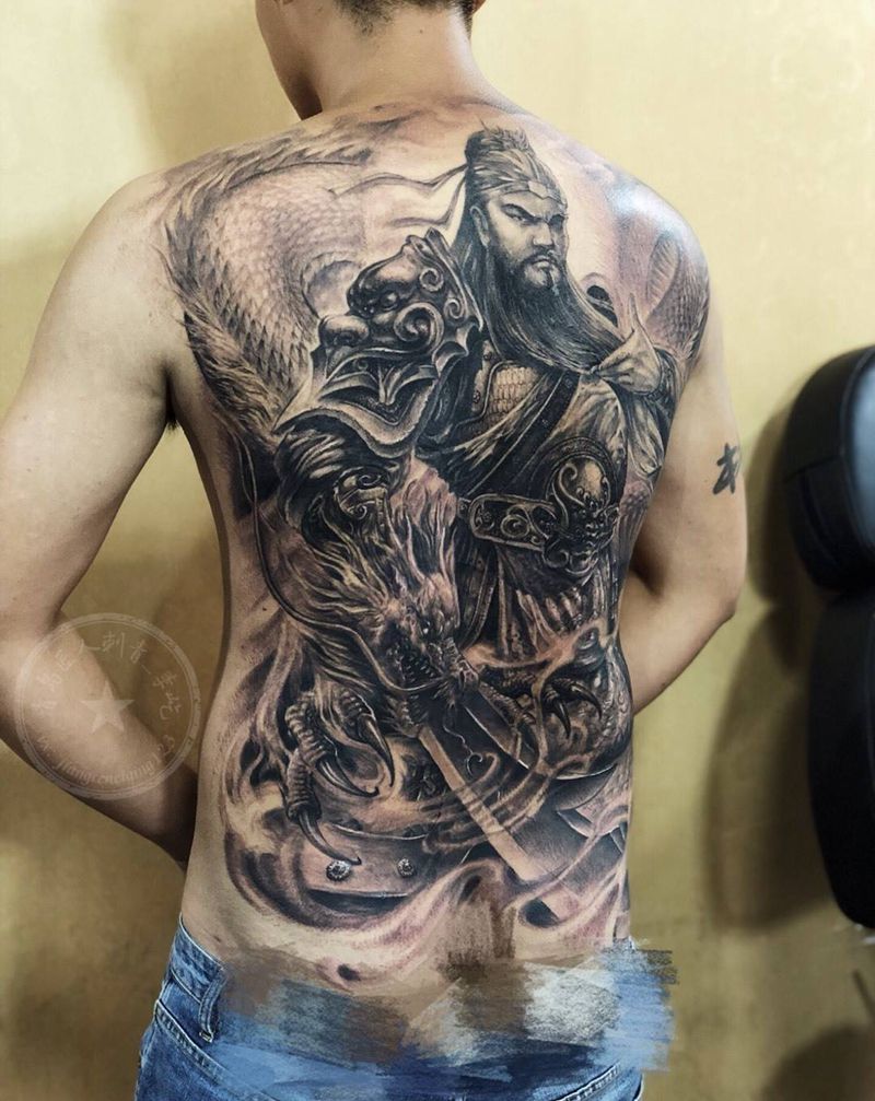 关公 关羽满背纹身图片_成品背部传统写实人物原创纹身图案