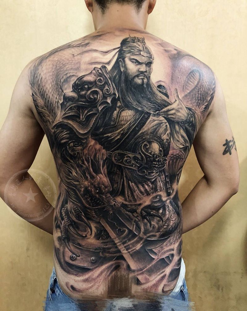 关公 关羽满背纹身图片_成品背部传统写实人物原创纹身图案