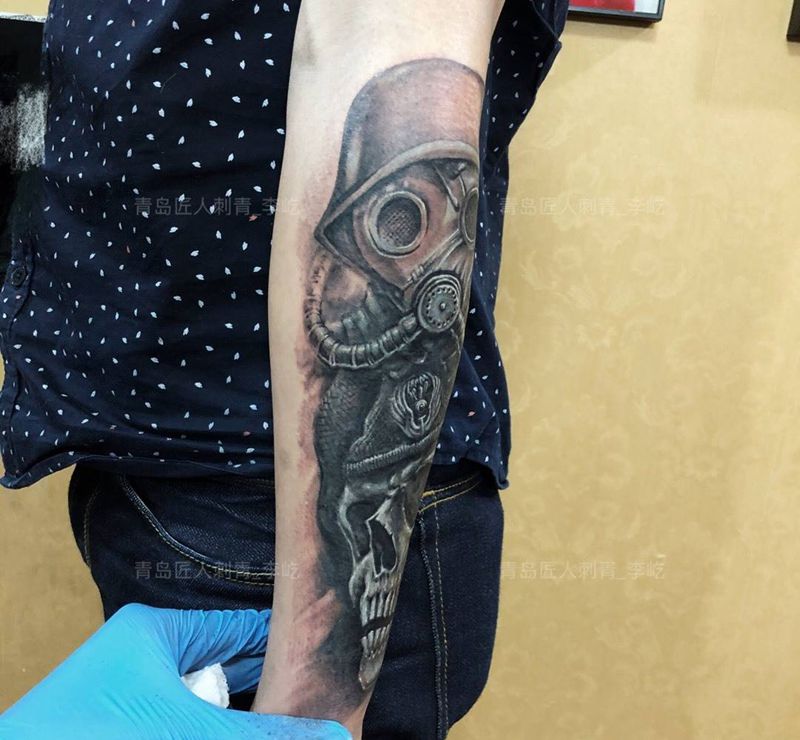 当前位置: 首页 >山东省青岛市纹身店-匠人刺青纹身图案>遮盖小臂纹身图片_成品手臂欧美写实人物原创纹身图案