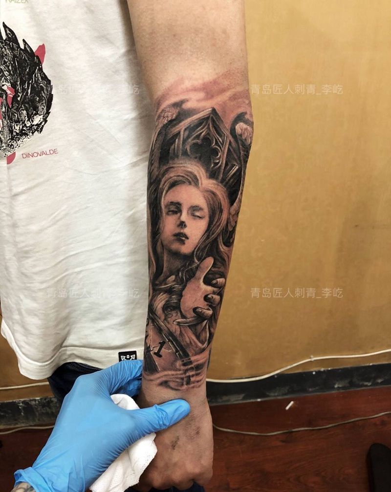 旧图添加包小臂天使纹身图片_成品手臂欧美写实人物原创纹身图案