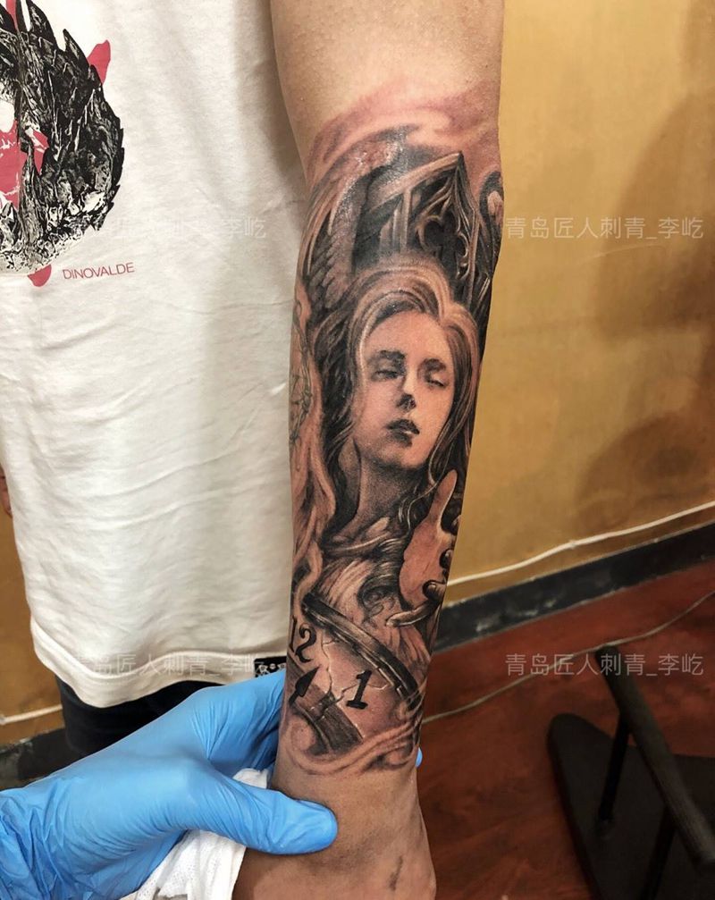 旧图添加包小臂天使纹身图片_成品手臂欧美写实人物原创纹身图案