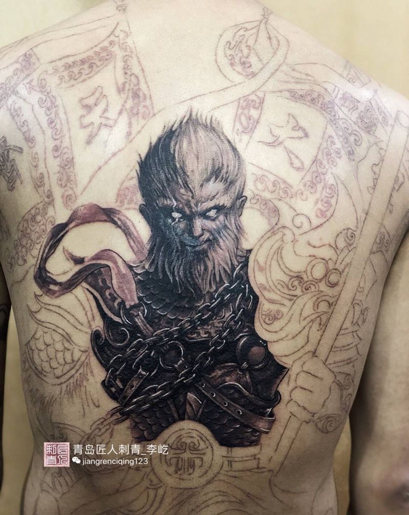 齐天大圣2纹身图片_成品背部传统写实人物原创纹身图案