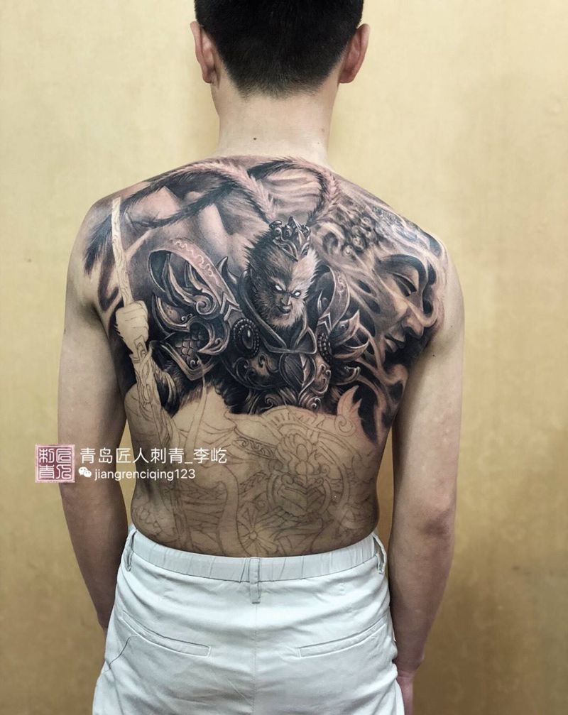 齐天大圣 猴子 孙悟空 满背纹身图片_成品背部写实人物鬼神原创纹身图案