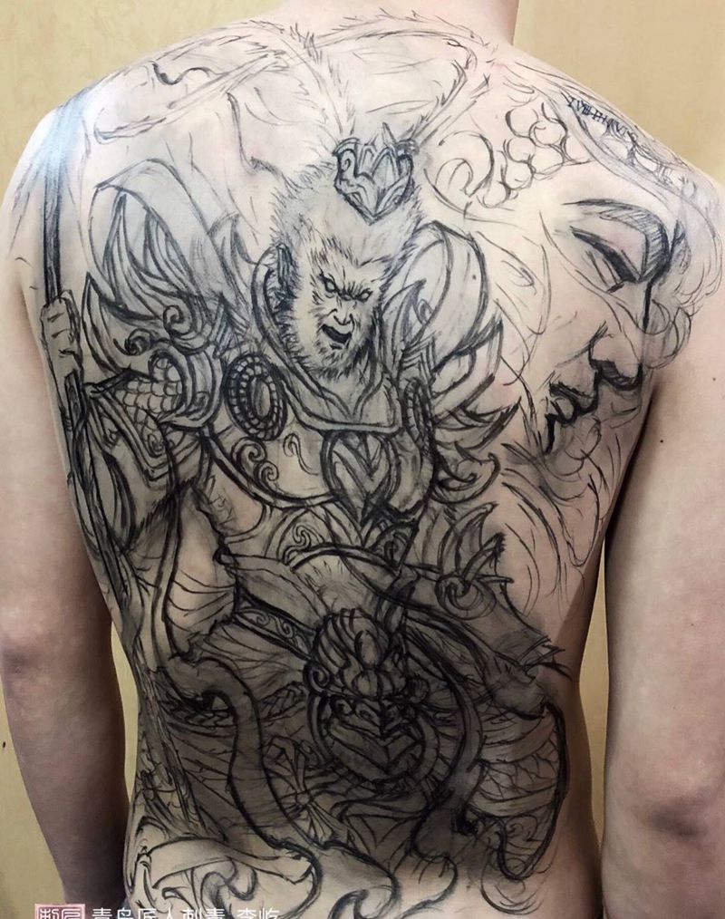 齐天大圣 猴子 孙悟空 满背纹身图片_成品背部写实人物鬼神原创纹身图案