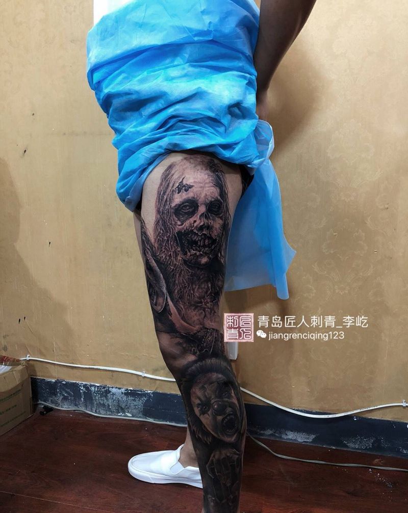 当前位置: 首页 >山东省青岛市纹身店-匠人刺青纹身图案>花腿欧美花腿纹身图片_成品手臂写实人物原创纹身图案